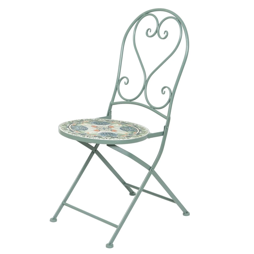 Dekorativt cafésæt i jern med kakkel overflade. Smukt design med mandala mønstrer. Tåler ikke at stå ude om vinteren.