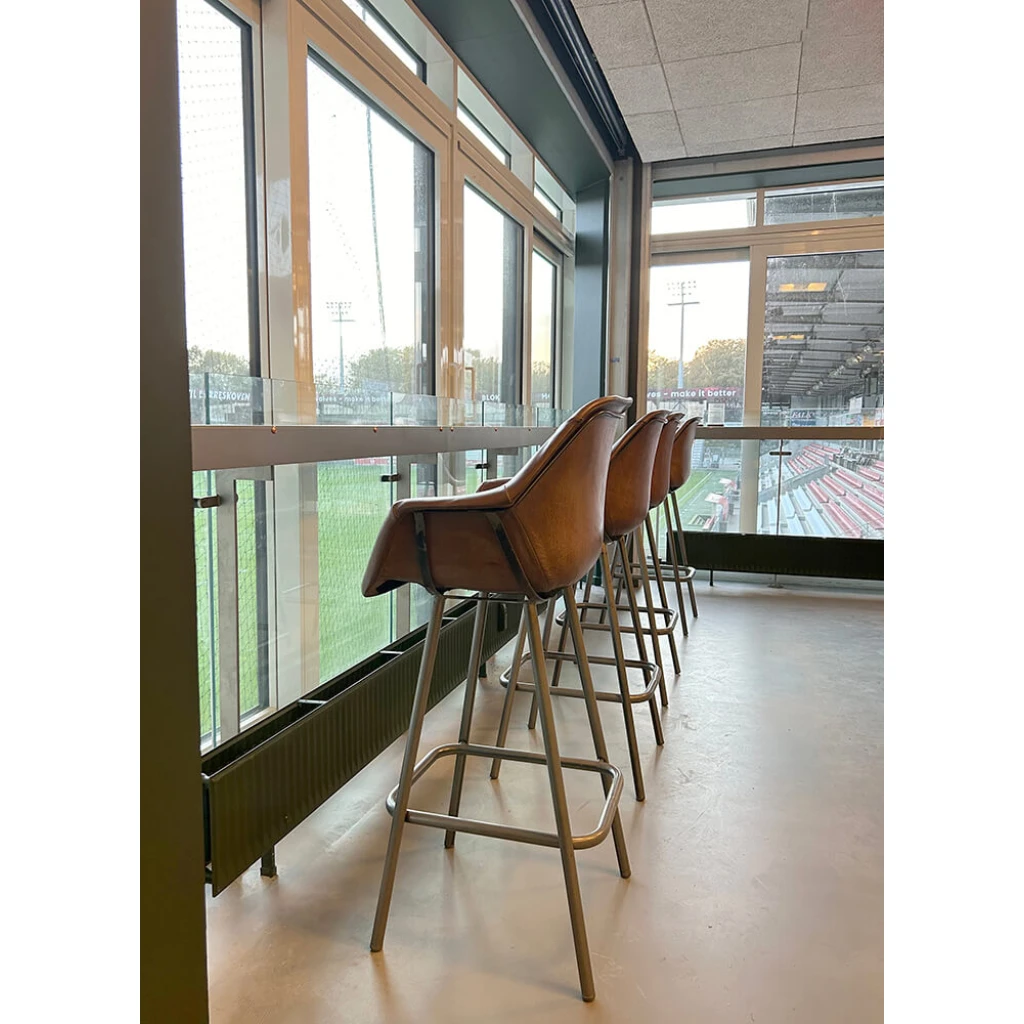 Er du på jagt efter en barstol, der rent faktisk er behagelig at sidde i længere tid ad gangen? Så er denne cool barstol i læder med armlæn et godt match. Stolen har et kraftigt og solidt jernstel, og et blødt og komfortabelt lædersæde. Der er en cool kontrast mellem det bløde læder og det rå, industrielle jern, der skaber et lækkert og stilrent look. Barstolen har tværgående stænger, du kan hvile dine fødder på. Her får altså du en barstol, med fokus på både design og komfort.